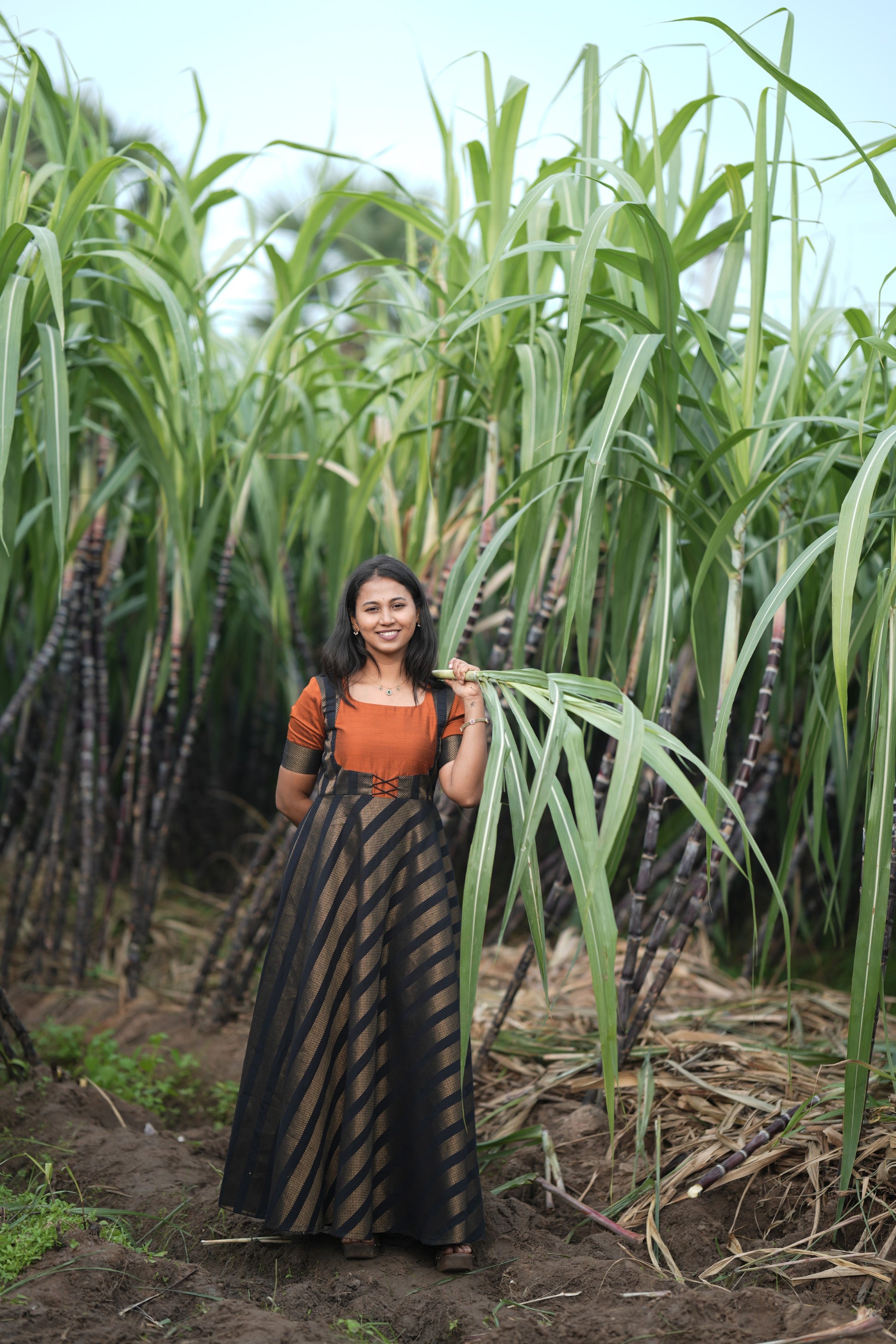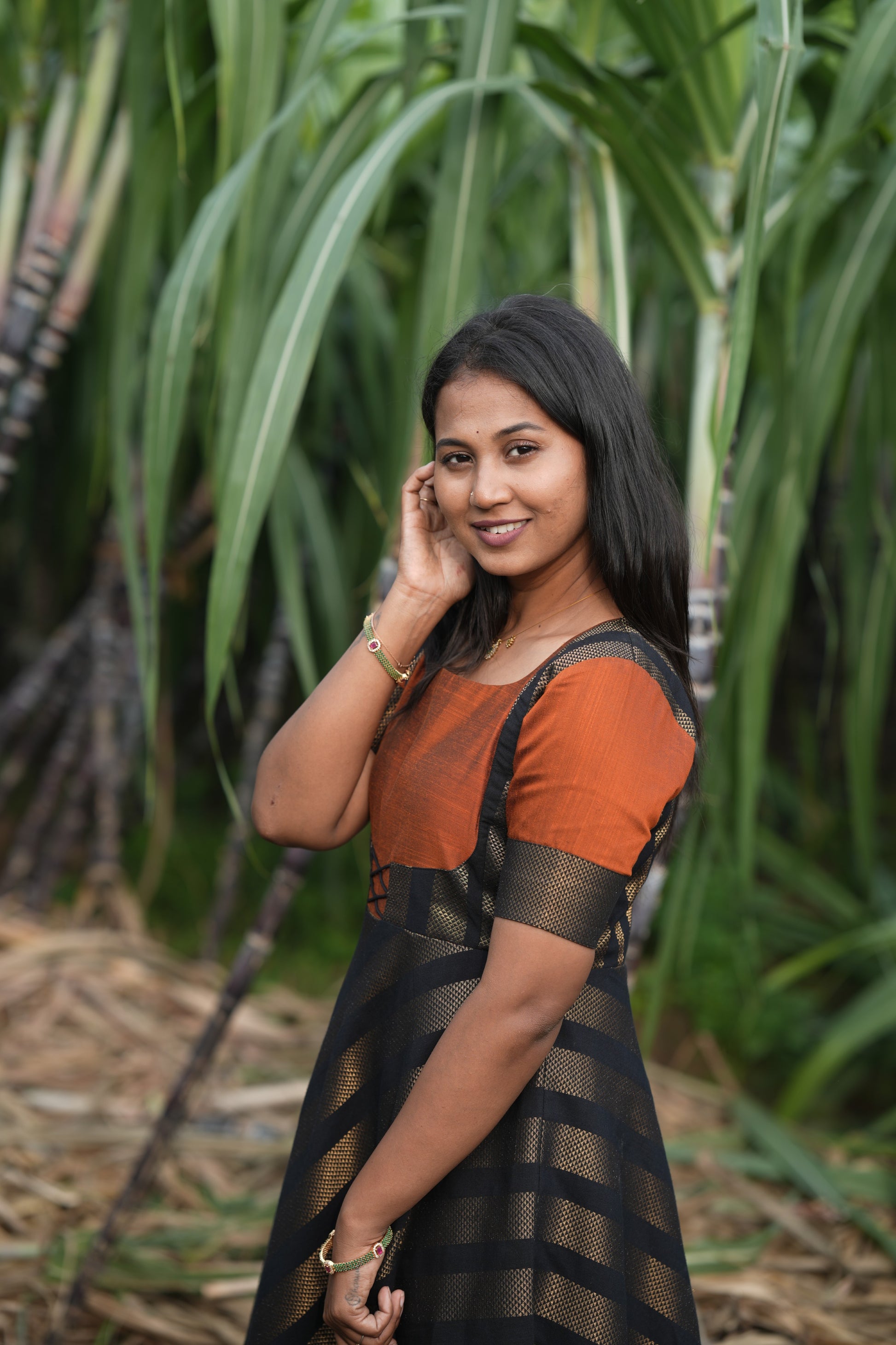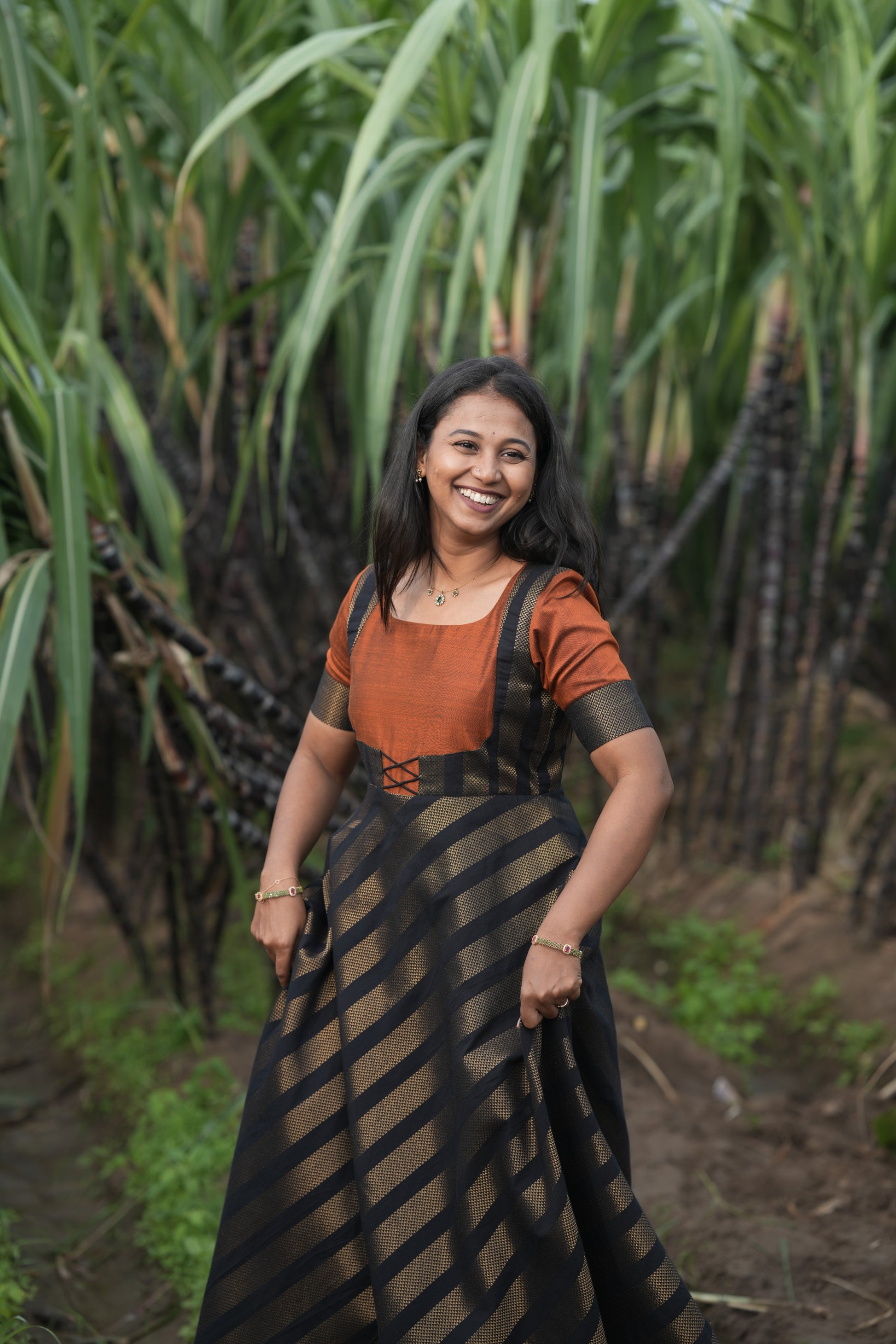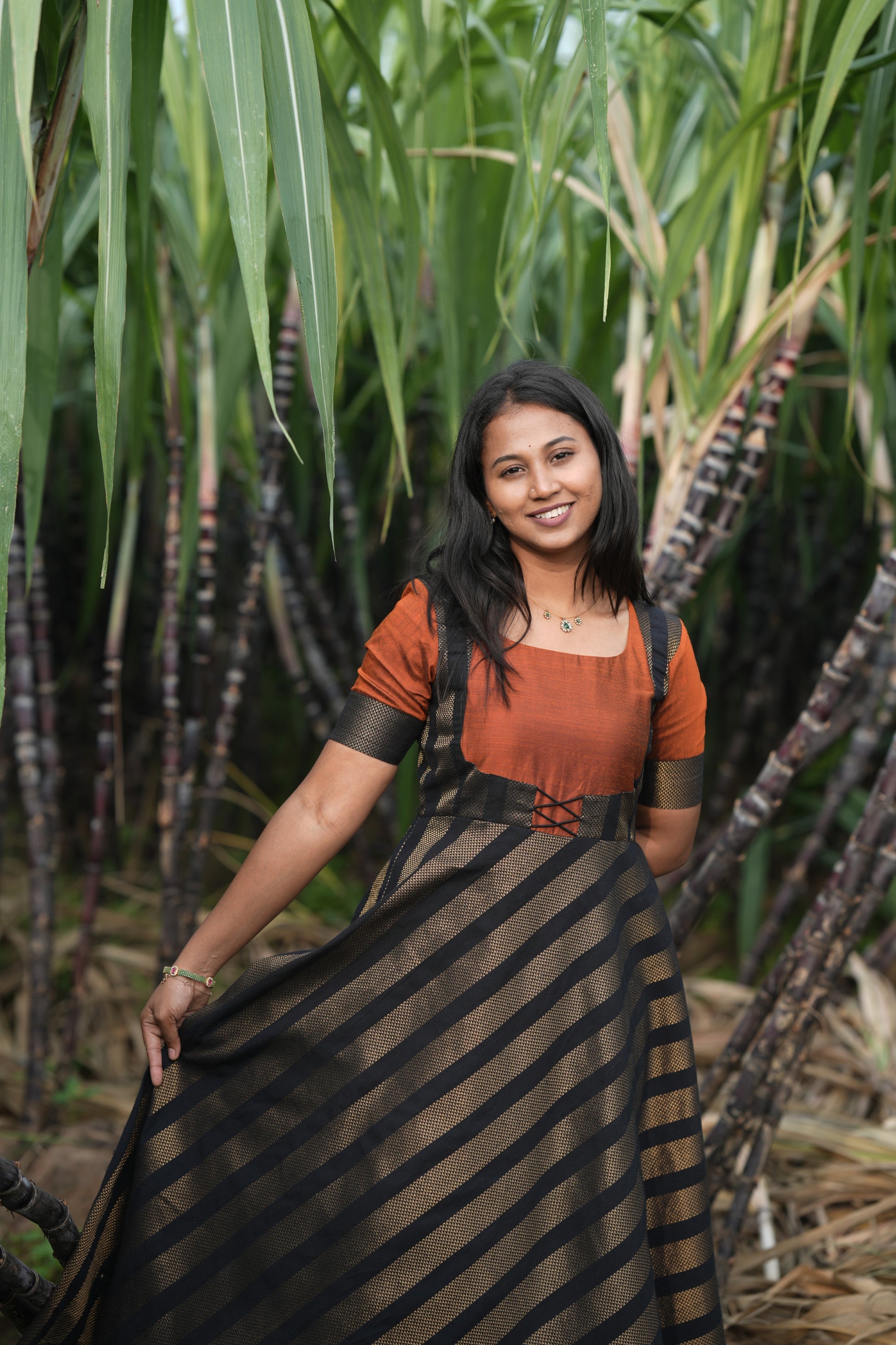 Black strip with Rust Orange umbrella cut