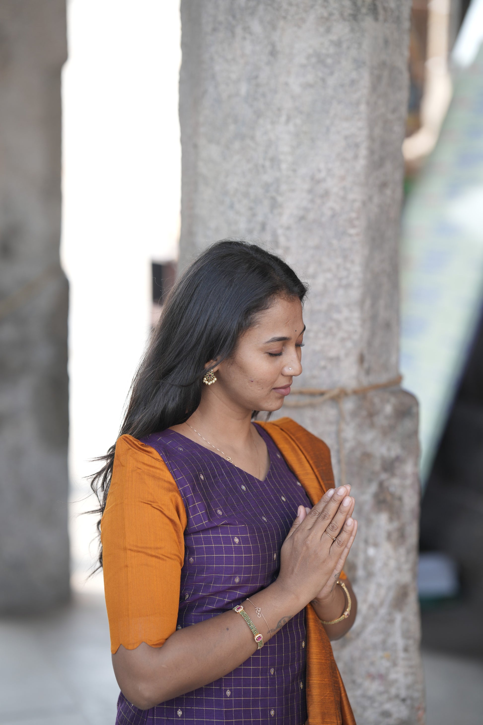 Mustard & purple with Scalloped pattern Salwar sets